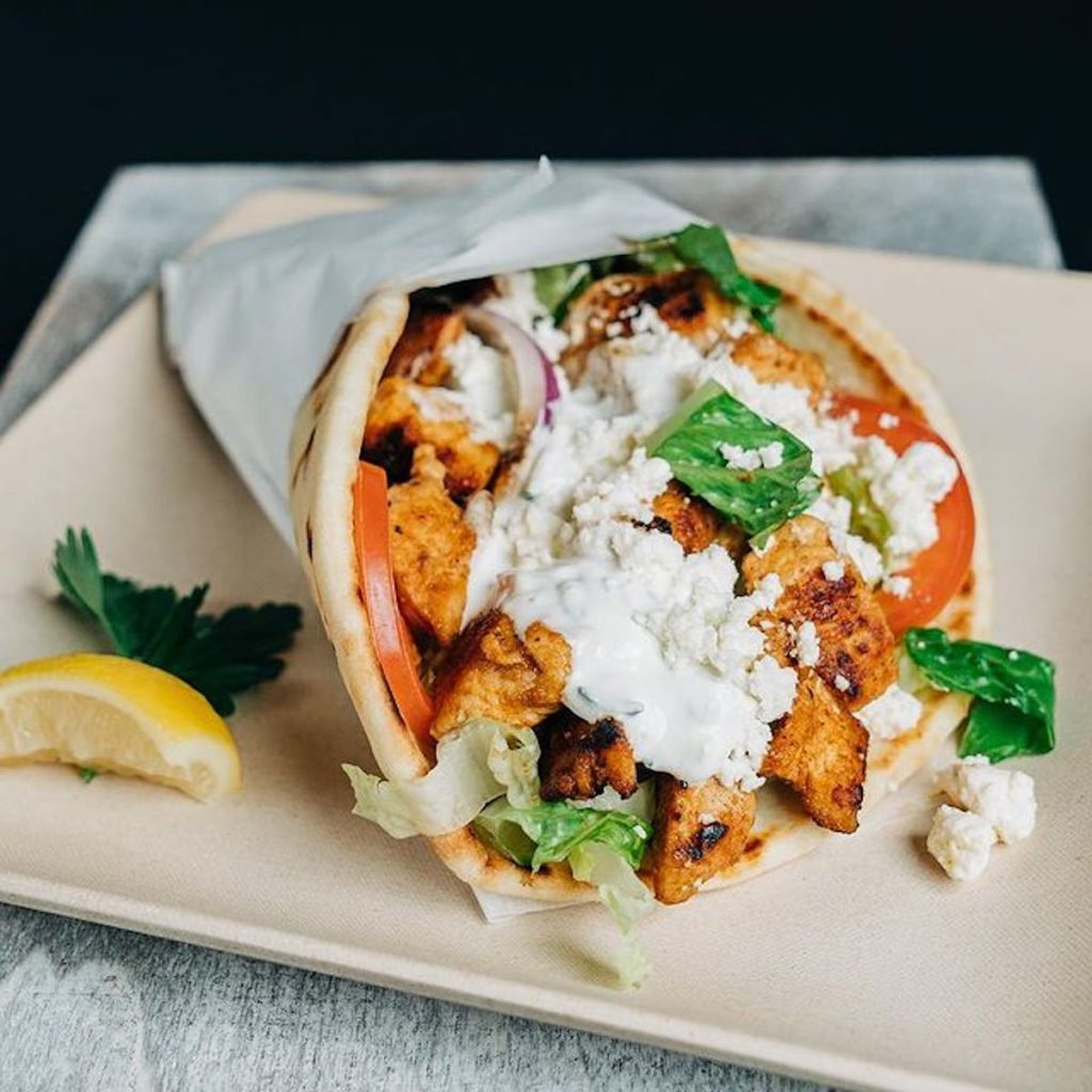 The Great Greek’s menu opens with appetizers like Hummus, Melitzanosalata (roasted eggplant puree with garlic, olive oil, and lemon juice) and stuffed grape leaves. It continues with familiar favorites like a Greek Salad, a gyro with lamb and beef or grilled chicken, and souvlaki (skewers of chicken, steak, lamb, or shrimp), and then with entrees like the Gyro Plate and the Falafel Plate. For dessert: Baklava, Mom’s Rice Pudding, and Kourabiedes Cookies. A kids’ menu is also available featuring a Grilled Cheese Pita, Chicken Fingers, and other child-safe dishes.