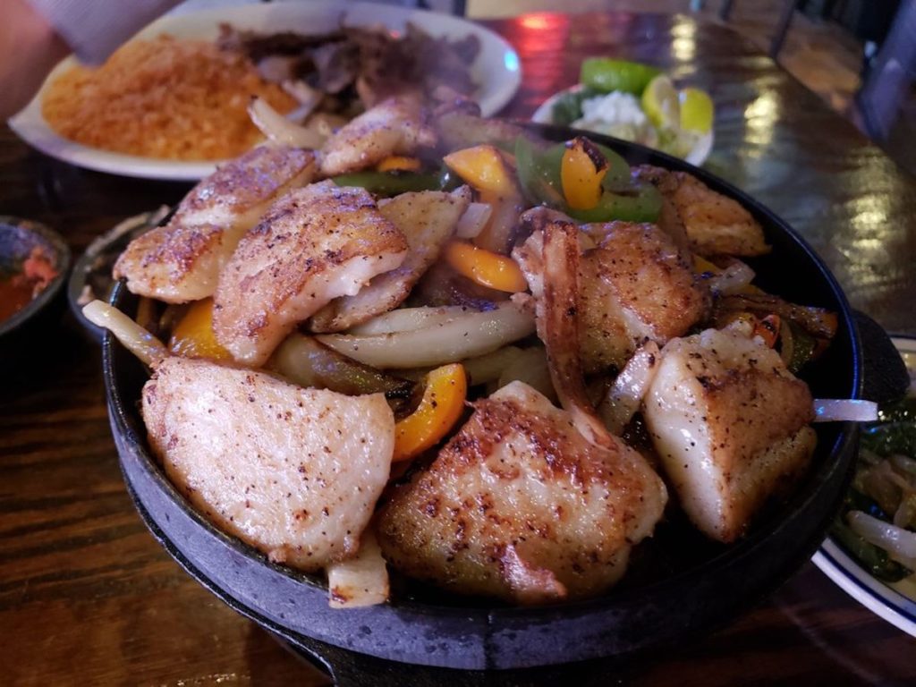 The chain’s dinner menu opens with appetizers like Queso Fundido and Shrimp Cocktail, moving along to its eponymous fajitas, served with the guest’s choice of protein: chicken, pork, beef, or shrimp. Next, Juan’s Mexican Favorites include Carne Asada a la Tampiqueña (Garlic shrimp & pico de gallo sauteed in our chile guajillo sauce on top of a New York steak with a cheese enchilada & your choice of corn or flour tortillas) and Mariscos Adobados (Basa fillet, shrimp, & scallops cooked in salsa de adobado with onions & cilantro with your choice of corn or flour tortillas).
