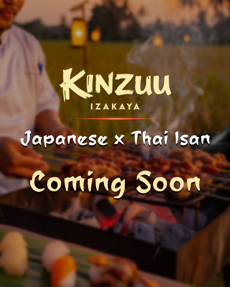“Japanese craft meets the bold soul of Thai Isan. Fire, flavor, and tradition reimagined. KINZUU IZAKAYA Coming soon.”