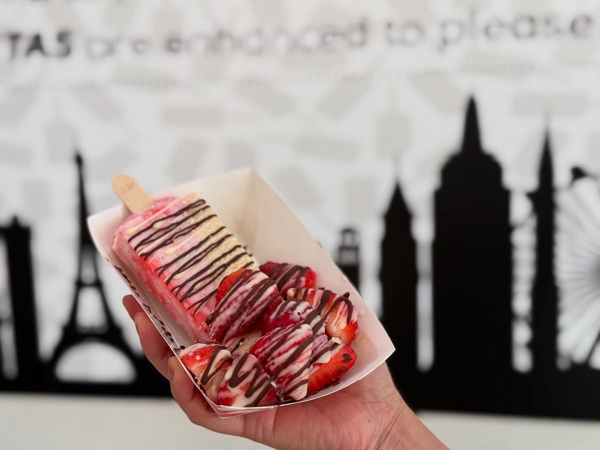 The Paleta Bar’s paletas are highly customizable. They come in cream- or water-based flavors like Mango, Taro, Matcha, Durian, Horchata, and more—then you choose drips like Dark Chocolate or Powdered Chile & Chamoy, and top it all off with extras like Pecan, Oreo, M&M, and more. There are also fruit cups, Aguas Frescas, and other choices (including savories like Dorinachos and Elote).