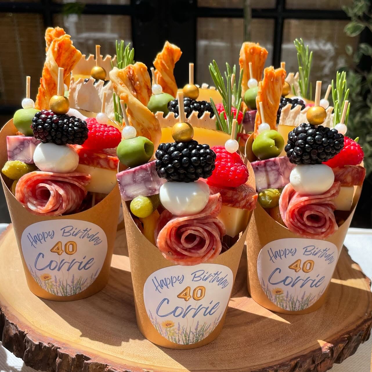 “Custom JEM charcuterie & cheese inspired grazing boards, boxes, cups, cones + tables. Classes too!” The Instagram page description reads.