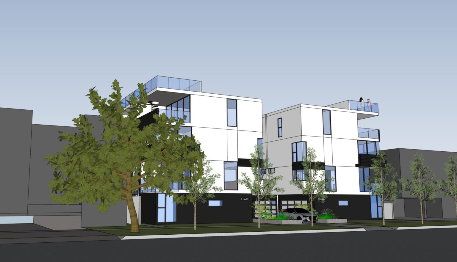 At 12610-16 W. Venice Boulevard, a developer plans on razing a seven-unit apartment development that was built in 1940. The demolition will make way for 12 small-lot houses, each consisting of six bedrooms and six bathrooms across four levels. Venice Dozen is how the project is being referenced on official City filings and marketing materials.