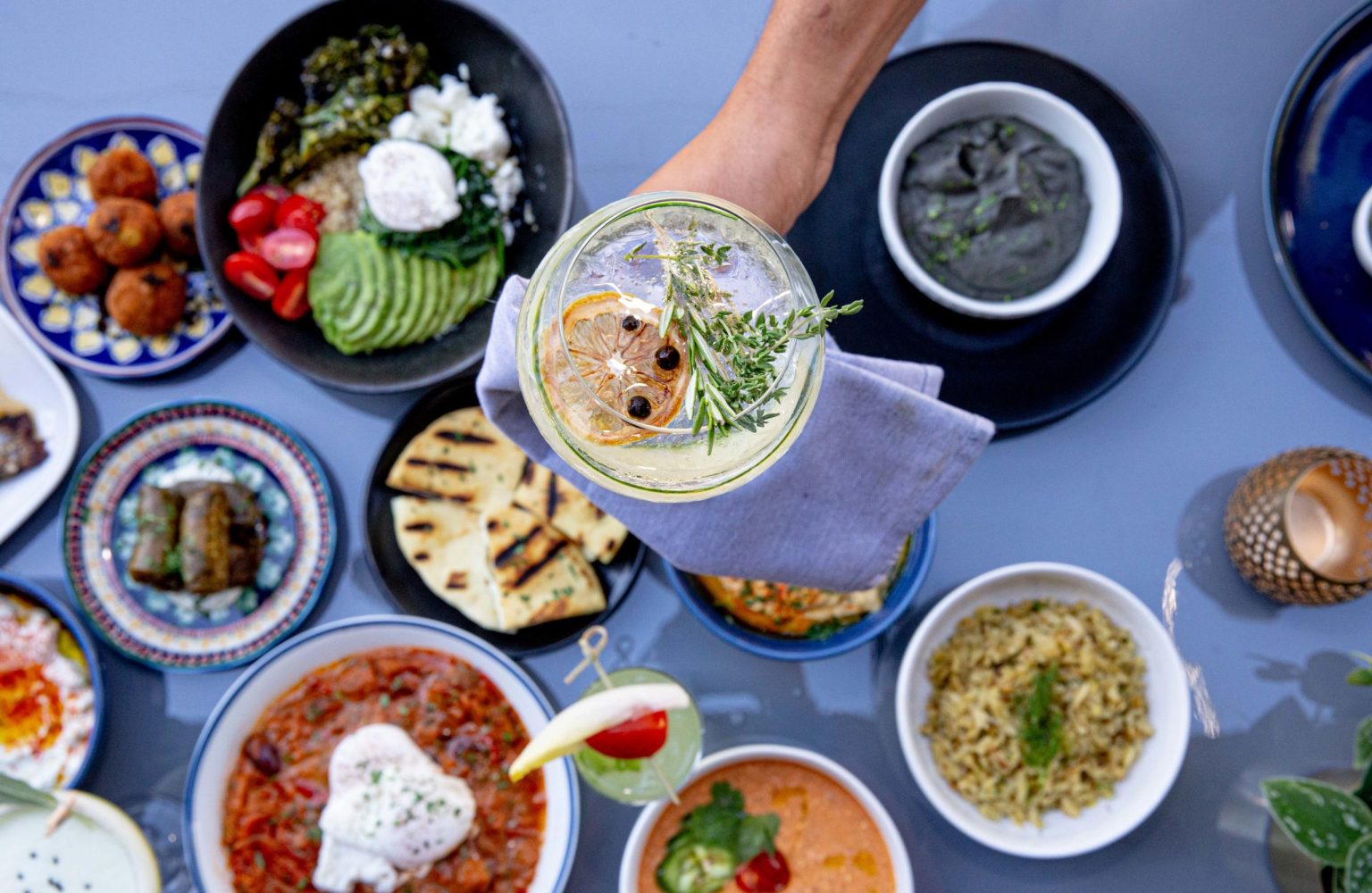 On the menu, Chef Moises Placencia offers “modern Mediterranean fare” including a selection of mezze plates like the Homemade Pita and Tzatziki made with Greek yogurt, shallots, lemon, and dill; Charred Octopus with fingerling potatoes, jalapeño, olives, and cilantro; and Spanikapita with spinach, feta, leeks, garlic, and lemon. Entrees include the Colorado Rack of Lamb that arrives at the table enveloped in smoke; the Salted Crusted Loup de Mer topped with a caper beurre blanc sauce; and for brunch, a Pita Benedict with a poached egg and tomato with choice of lamb sausage or smoked whitefish.