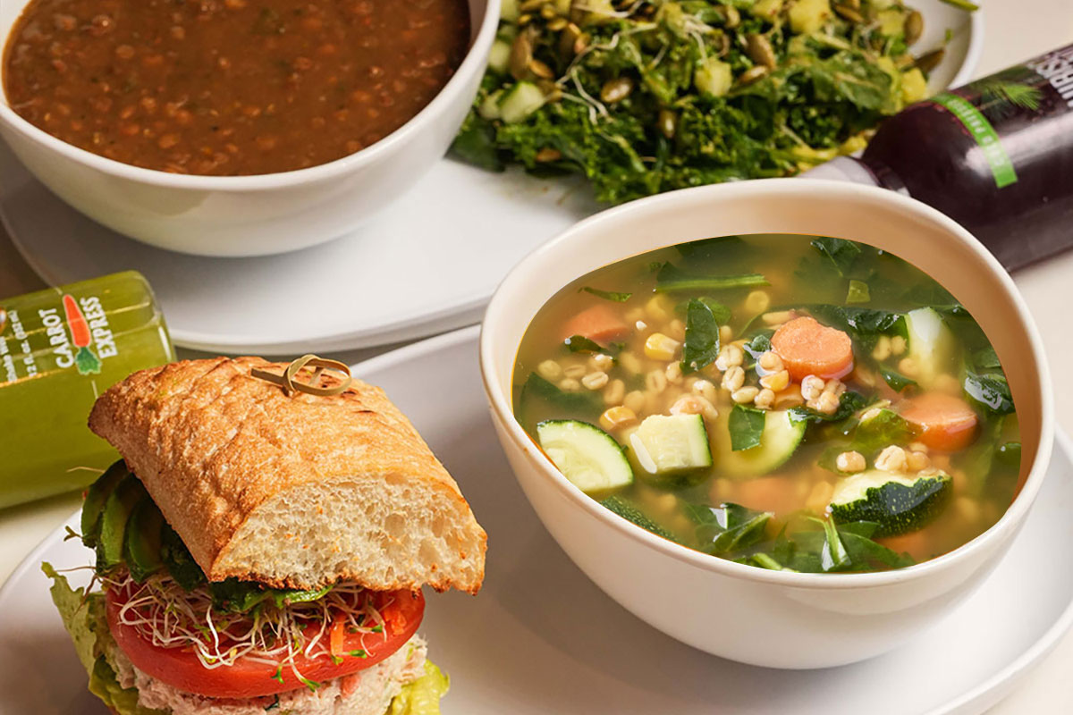 Customer favorites include loaded sweet potatoes that are nutrient dense and satisfying, the Paradise Bowl, made with organic Brazilian açaí topped with granola, strawberries, blueberries, banana, pineapple, and coconut flakes, drizzled with honey; and the restaurant’s signature carrot cake made with avocado oil, fresh carrots, sweet raisins and crunchy walnuts.