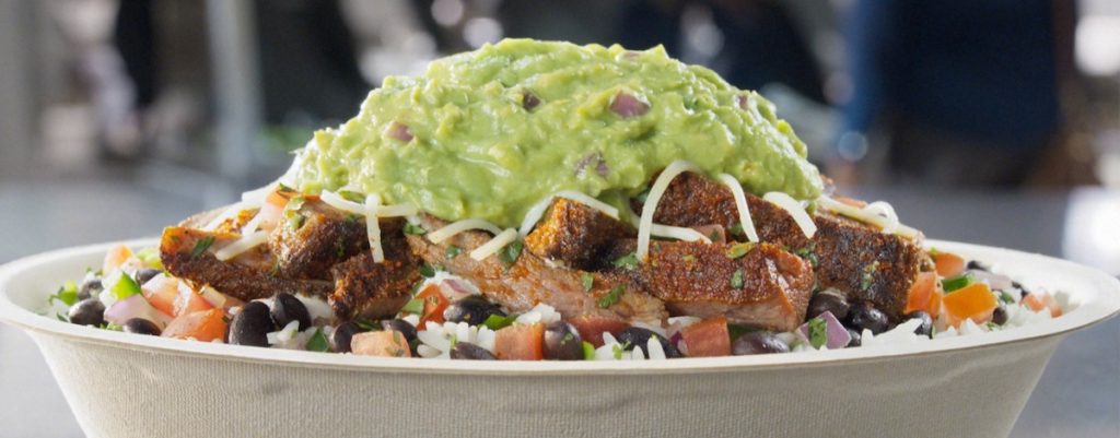 The chain’s menu of burritos, bowls, tacos, and quesadillas will be familiar to most Americans by now. Guests choose their culinary delivery system (burrito, bowl, etc.) and fill in their own choices from a selection of proteins like steak, chicken, carnitas, barbacoa, and more. These are topped off with choices of rice, beans, and other toppers like salsa, guac, cheese, and veggies.