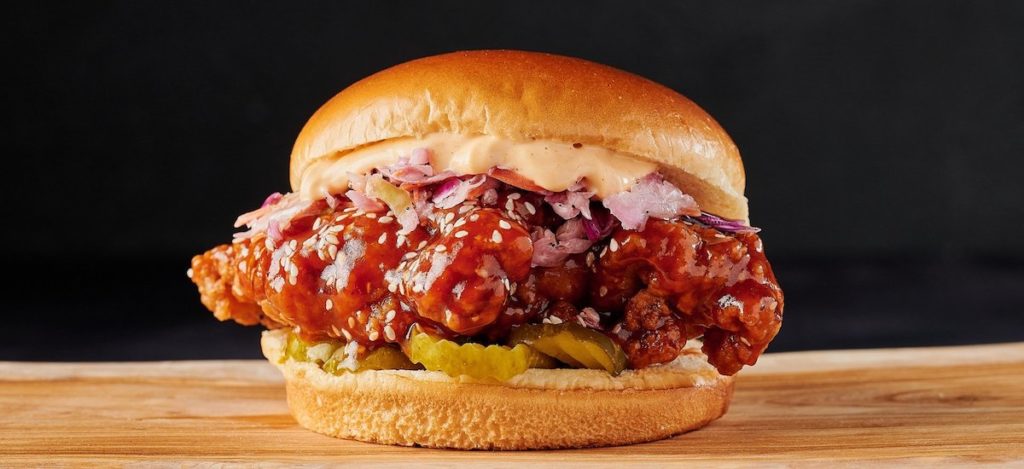 A menu posted on the brand’s website lists out a selection of sauces and seasonings that include Southern (i.e. seasoned but sans sauce), Seoul (Sweet Asian with Sesame Seeds), Caribbean (Jerk Pineapple Heat), Cluckin’ Hot, and—hottest—What the Cluck. The menu also features a selection of chicken sandwiches in varieties like Nashville-style Hot Chick, Seoul Chick, Island Chick, and Desi Chick. Cluckin’s chicken also comes in the form of nuggets, tacos, and chicken and waffles.