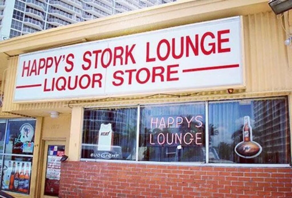 Located at 1872 Kennedy CSWY in North Bay Village, Happy’s Stork Lounge & Liquor Store is preparing to pick up stakes and move to a new location.