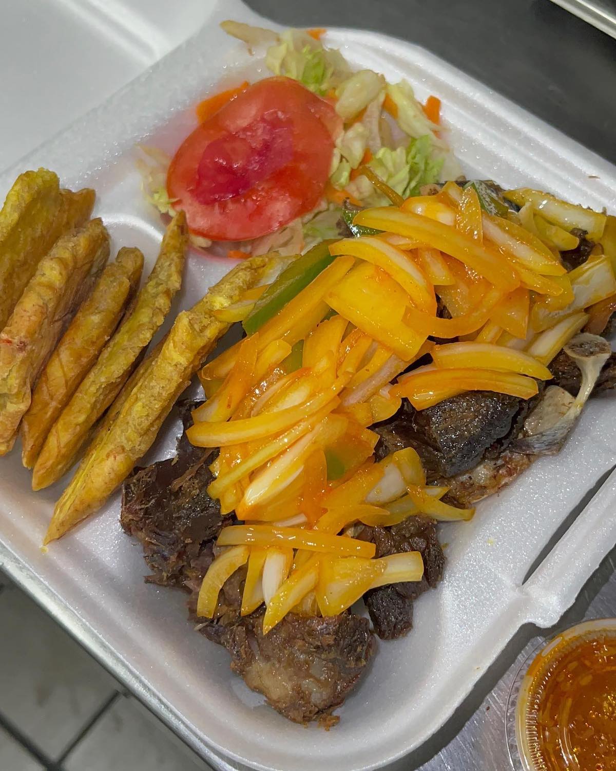 “First time I tried Haitian food and I am very impressed with the taste of the cuisine,” says one 5-star review on Google Maps. “The oxtail called in Haitian Creole Queue Boeuf or Ke Bef and the Goat in sauce called Cabrini en Sauce were delicious. The dish came with crispy plantains, a salad and a very tasty rice and beans which I believe had been infused with coconut milk and some nice herbs and spice. Excellent introduction to Haiti’s food and also very nice and sweet staff.”
