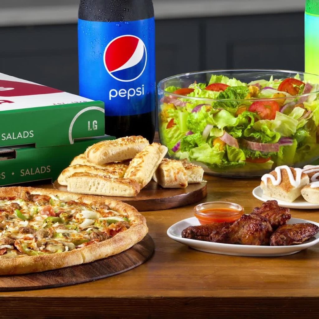 Marco’s pizzas come in tried-and-true varieties like the Deluxe, with Pepperoni, Italian sausage, bacon, and three cheeses; the Garden, with mushrooms, black olives, onions, sliced tomatoes, and three cheeses, plus feta; and Pepperoni Magnifico. Also on the menu are sub sandwiches in classic flavor profiles like Steak & Cheese, Italiano, and Chicken Club, along with a selection of salads and sides that include Cheezybread, Chicken Dippers, and Chicken Wings.