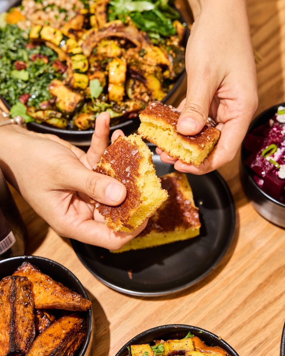 Current “unmessed-with” Seasonal Highlights from the menu include the Winter Harvest Salad (Winter Spiced Farro, Farm Greens with Mint, Pecan Kale Caesar, Marinated Cucumbers, Grape Tomatoes, Half Avocado, Cider Vinaigrette (un)dressing), the Southern Comfort Plate (Grass-fed Steak, Mac & Cheese, Chili-Garlic Brussels Sprouts, Winter Spiced Farro, Spicy Harissa (un)dressing), and the Surf & Turf Plate.