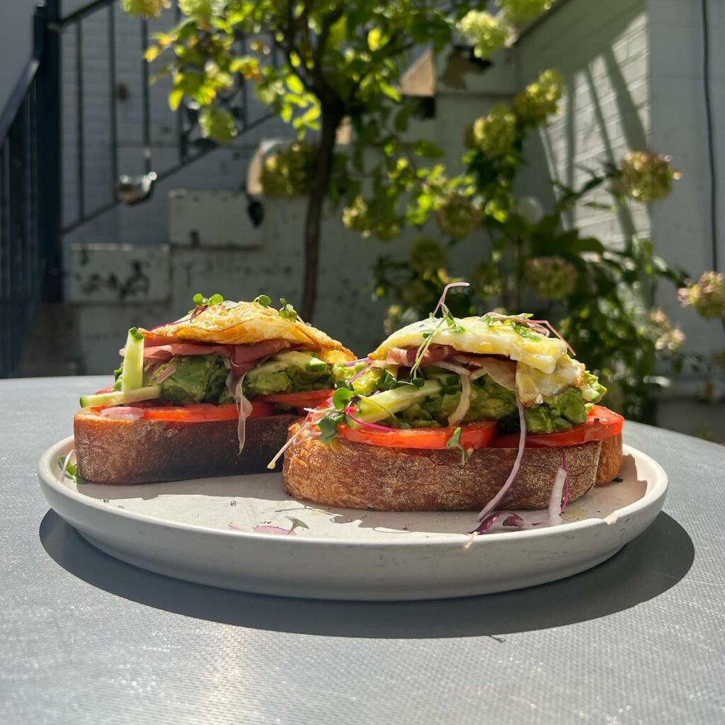 Emissary’s menus have included Breakfast and Brunch choices like Almond Butter Toast, a Breakfast Burrito, and the Bullfrog Everything Bagel Platter with Ivy City Lox (cream cheese, cucumber, onions, capers, tomato, organic greens). These are served alongside a selection of coffee drinks and cocktails.