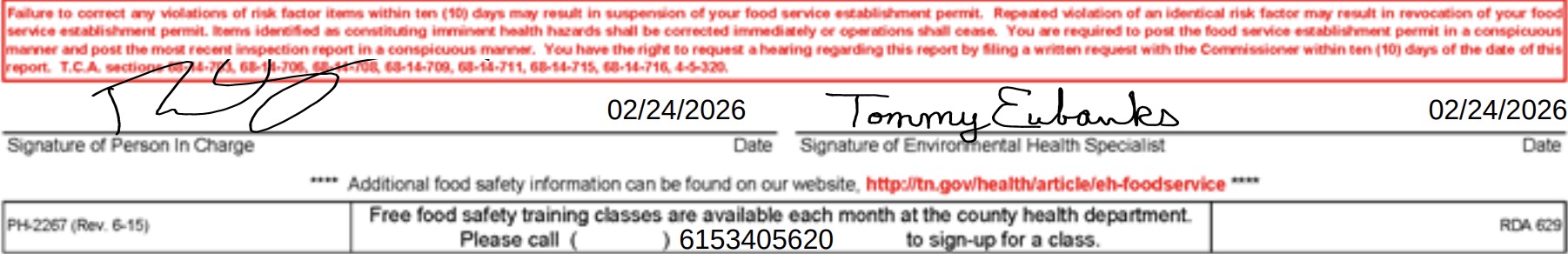 Screenshot of the report (Source: inspections.myhealthdepartment.com/tennessee)