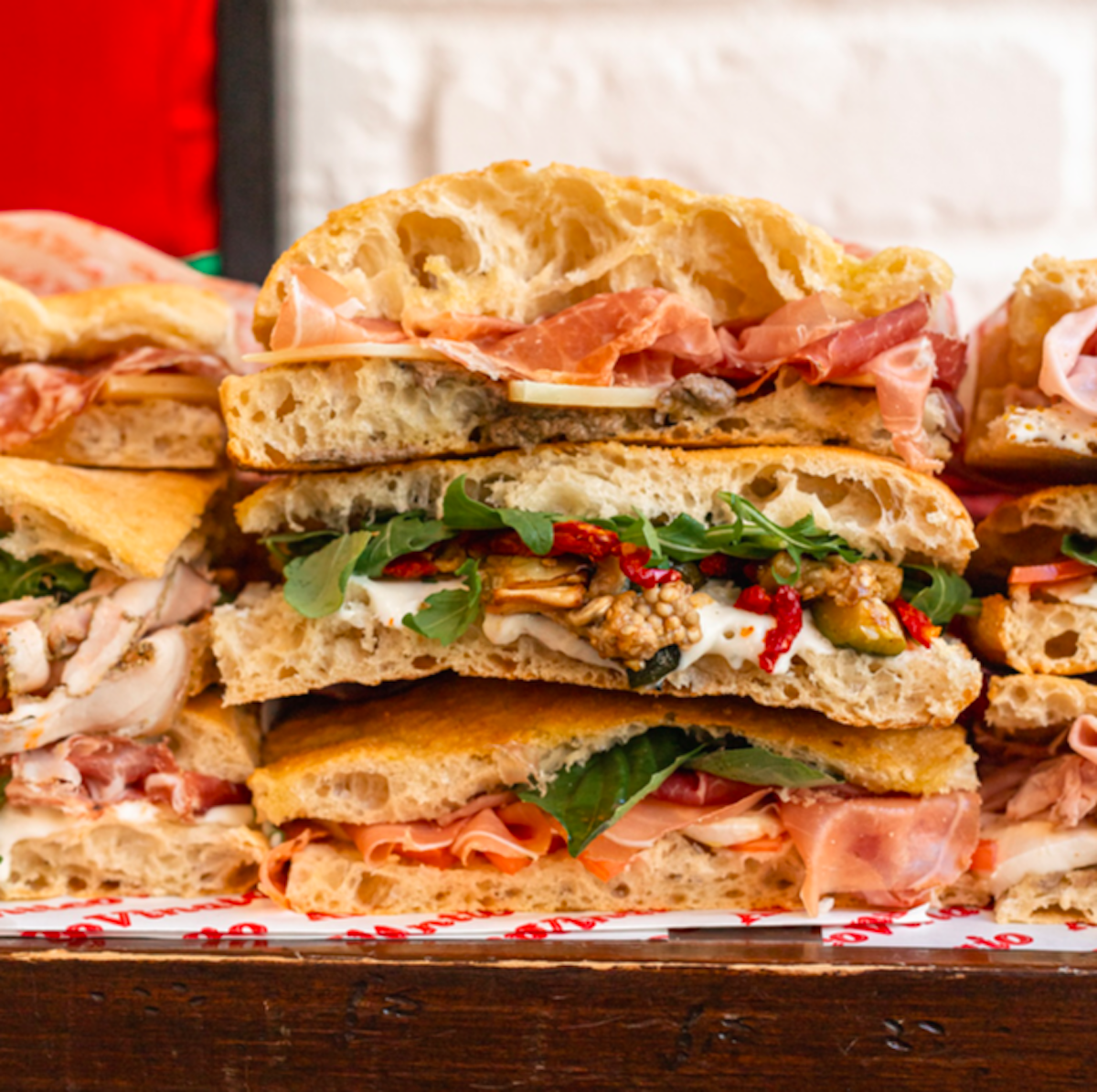 All’Antico Vinaio’s menu includes sandwiches like the La Favolosa, which features salame toscana, pecorino cream, artichoke cream and spicy eggplant, and La Dante, which includes capocollo, stracchino, truffle cream and arugula.