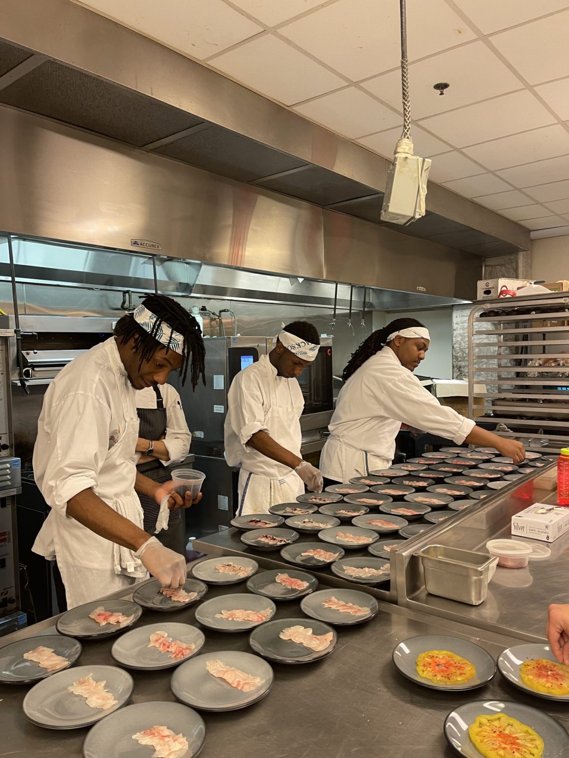 The students learn basic cutting skills and specific food profiles to graduate from the program while passing a food handler certification through the National Restaurant Association. They know to make basic bread, eggs, sauces, vegetables, and more.