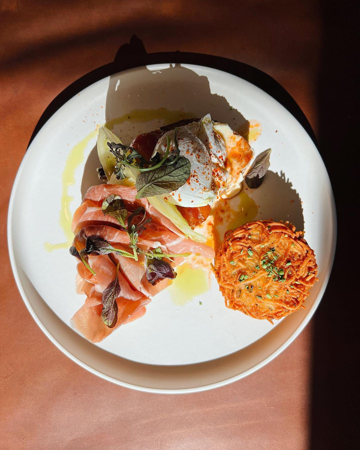 Labeled an all-day cafe, for brekky you’ll find options like lemon poppyseed waffles, smashed avocado toast, scrambles with seasonal vegetables, and mid-day plates like the chicken schnitzel roll or the Two Hander burger.
