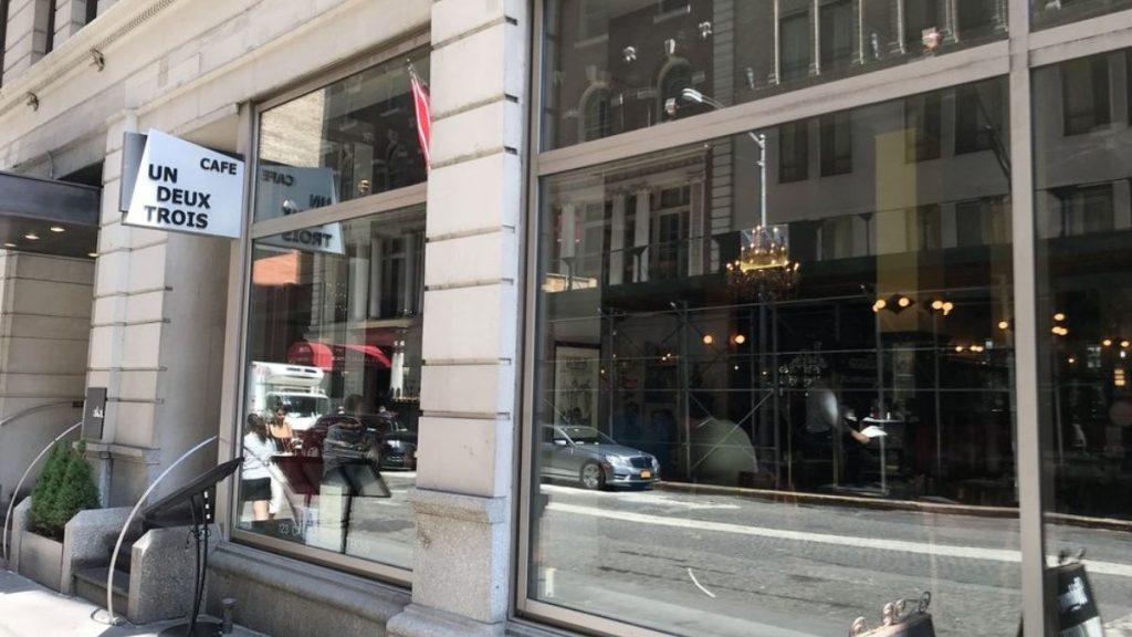 View of Cafe Un Deux Trois from the street (Source: Yelp)