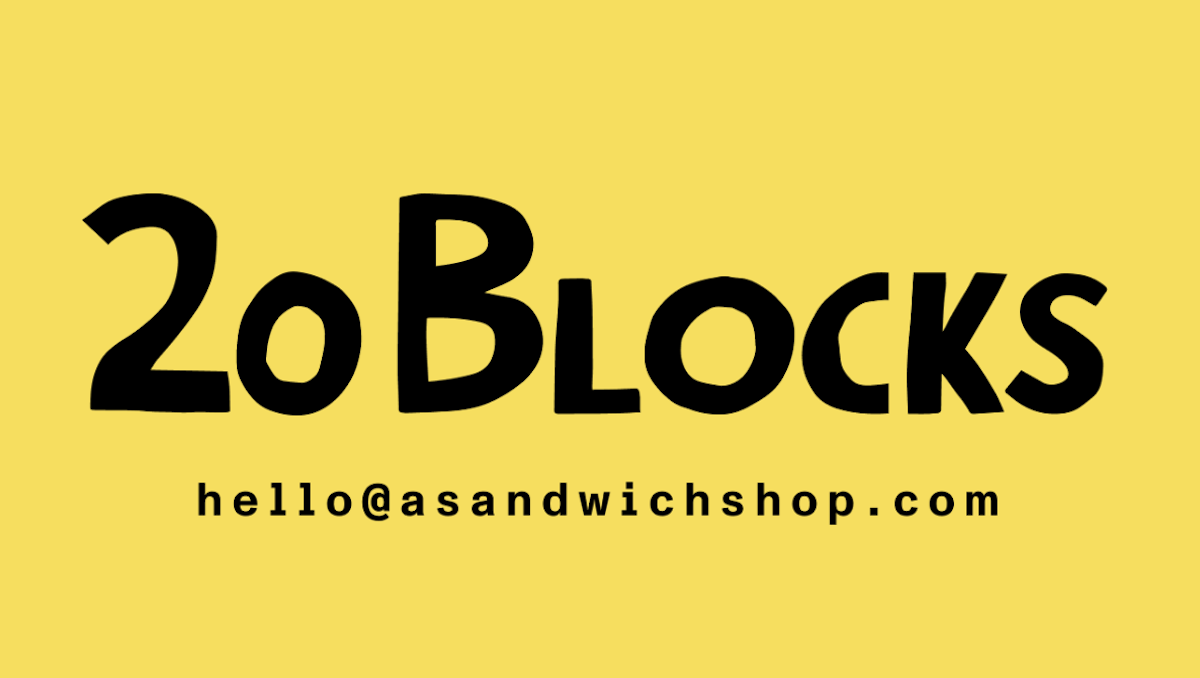 20 Blocks describes its concept as “two slices of bread, nothing but magic between ’em” on its Instagram page. The proposed menu includes different sandwiches such as egg, fried fish and ratatouille, according to the filed paperwork. The shop will also serve a broccoli rabe sandwich, which will include sauteed broccoli rabe, smoked provolone, Calabrian chili and pizza bianca. Sides will include items like potato salad and sweet potato chips.