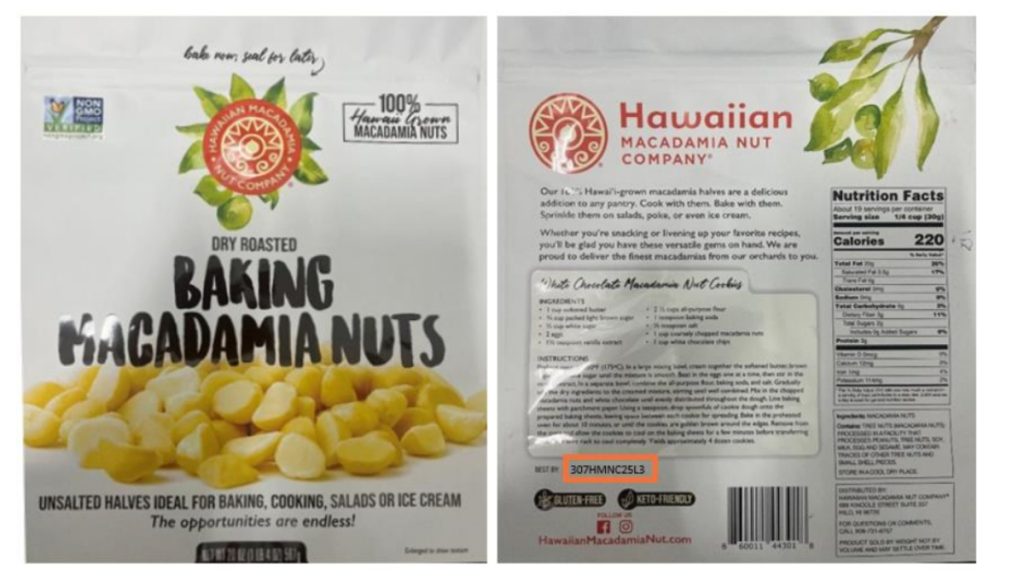 In December, a recall for Hawaiian Macadamia Nuts was initiated. It was due to the presence of Salmonella, which was detected in one batch. The contaminated products were labeled with a Costco item number 1840464 and a lot code 307HMNC25L3.