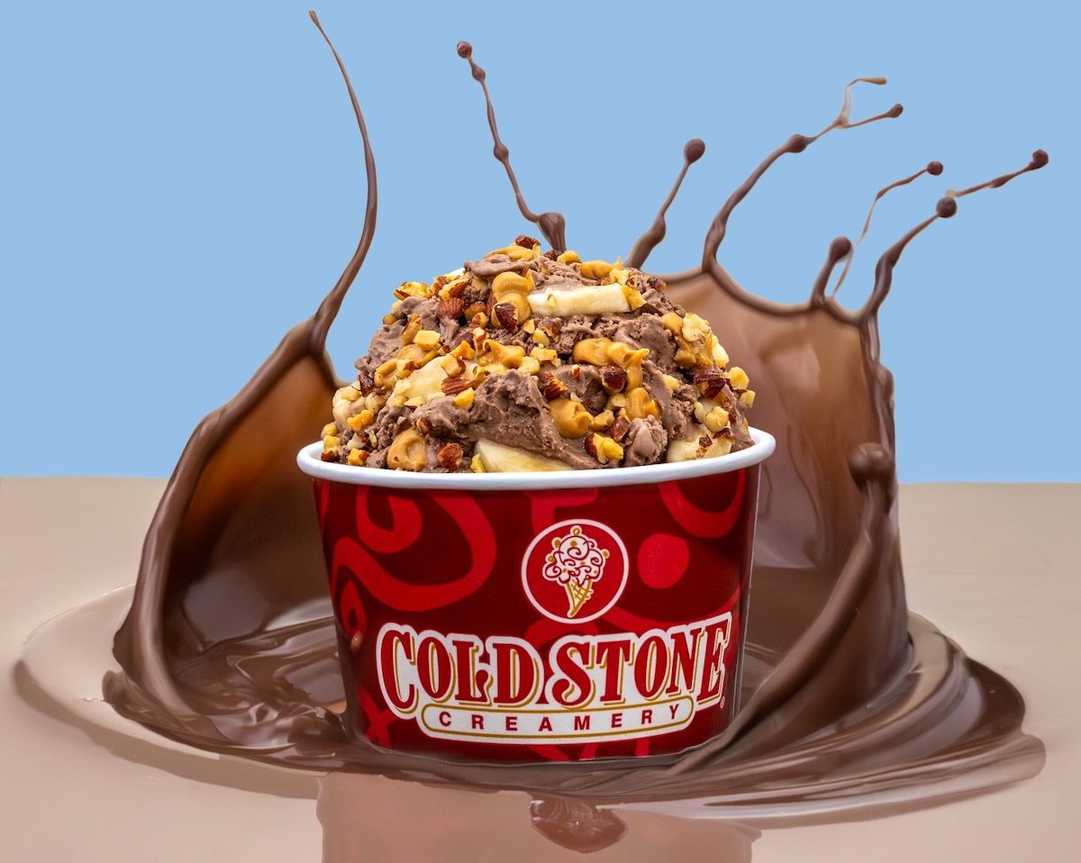 The national ice cream brand is notable for its high-quality ice cream and bold flavors such as Cake Batter (invented by Cold Stone) and the legendary Founder’s Favorite, which is made up of sweet cream ice cream with pecans, brownie, fudge and caramel.