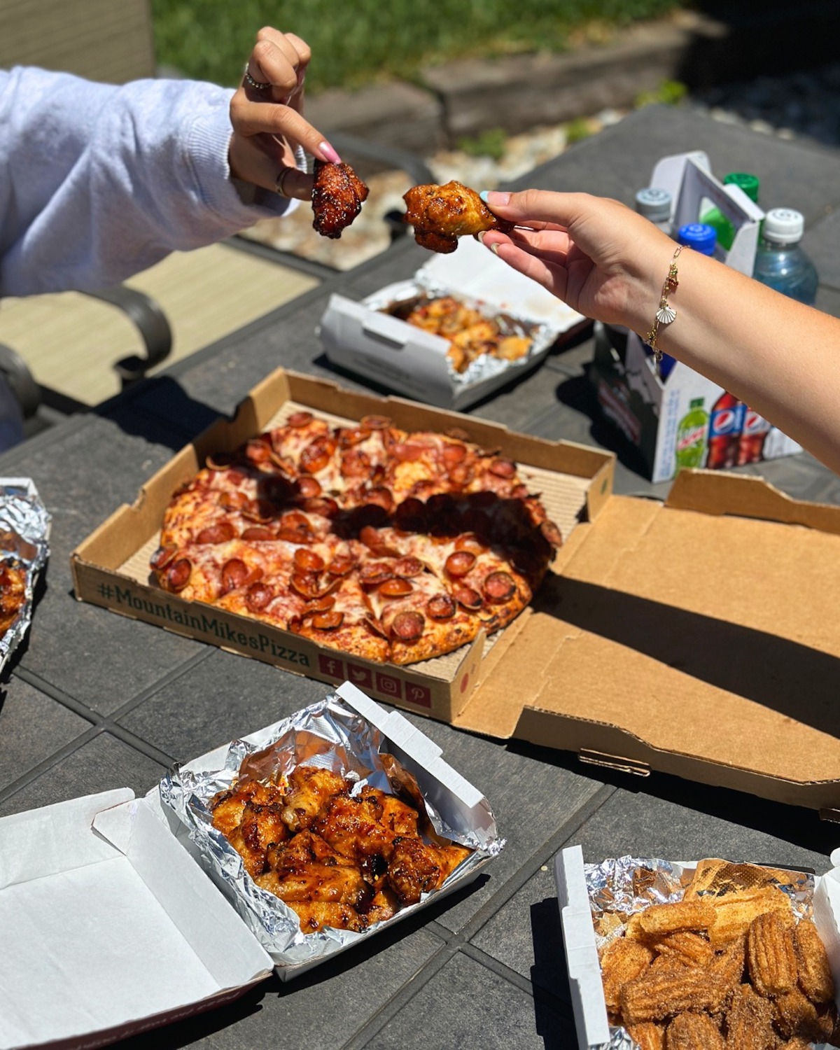 Unfamiliar readers can expect a classic menu of specialty pizzas, a lunch buffet, chicken wings, sides, desserts, beer and wine. Most notably, Mountain Mike’s is known for its crispy, curly pepperoni topping.