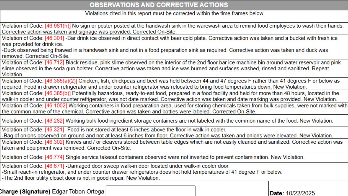 According to the report, the restaurant is expected to address the noted violations. Failure to do so may lead to revocation of its health license and other legal consequences.