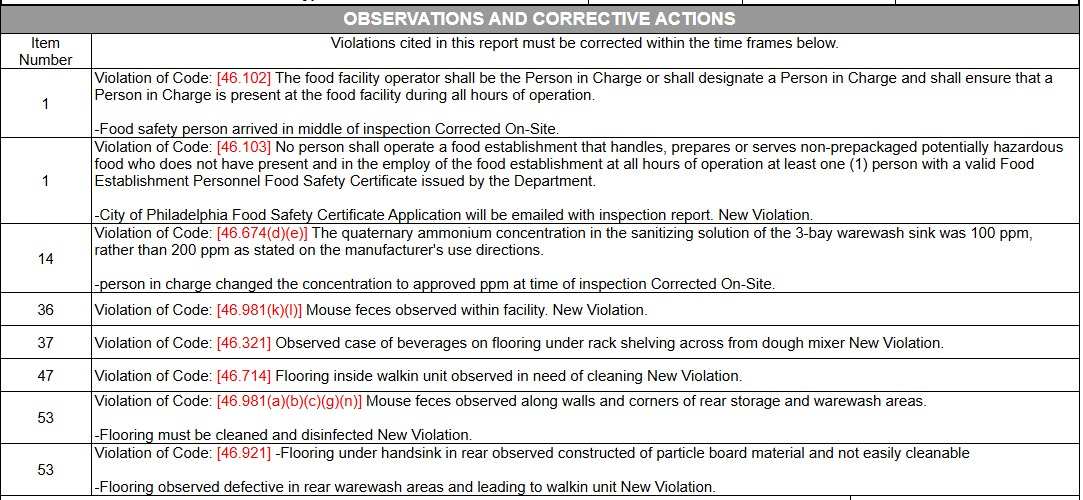 According to the official report, on October 8, the pizza establishment was flagged for violations. The official report listed several health code and food safety violations, such as: