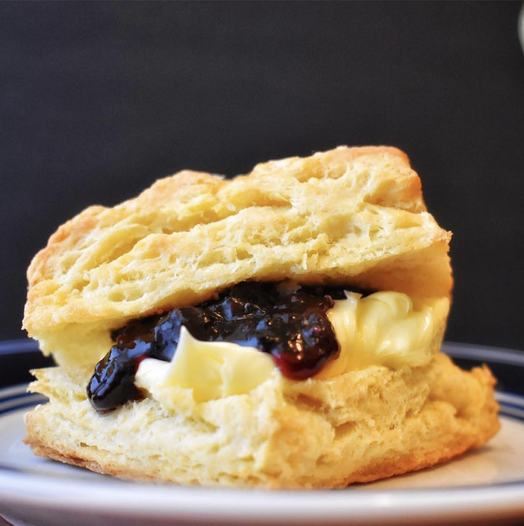 LaGreca’s handmade biscuits will be sold individually, by the bunch, and frozen to take home. They will come in her signature buttermilk flavor topped with a touch of sugar and sea salt, as well as rotating and seasonal flavors like asiago and black pepper, jalapeno cheddar, and strawberries and cream. You can top your biscuit with various spreads, like a whipped honey butter or fruit spread. Biscuits will also be turned into sandwiches like the Hot Honey Fried Chicken Biscuit or the Pub Cheese and Pickle with a salty, spicy, and creamy housemade chipotle pub cheese and thick-sliced brined pickles. Bethlehem Biscuit Co. will also make to-go containers of fresh-made tuna and chicken salad. If you’re looking for something sweet, you can try a shortcake biscuit with fruit and whip cream or a giant chocolate chip cookie. There will also be brunch items on the menu, like biscuits and gravy.