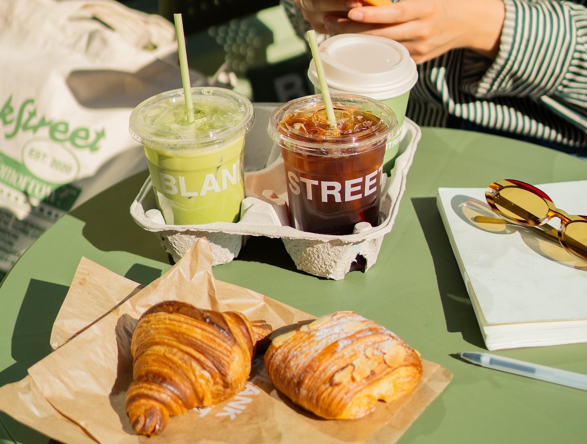 Blank Street serves classic coffee, espresso and matcha, along with signature drinks such as the “Daydream” latte with vanilla bean, honey and cinnamon; a strawberry shortcake matcha with strawberries, fresh jam and a madeleine; and a blueberry matcha with blueberries, vanilla and ube.