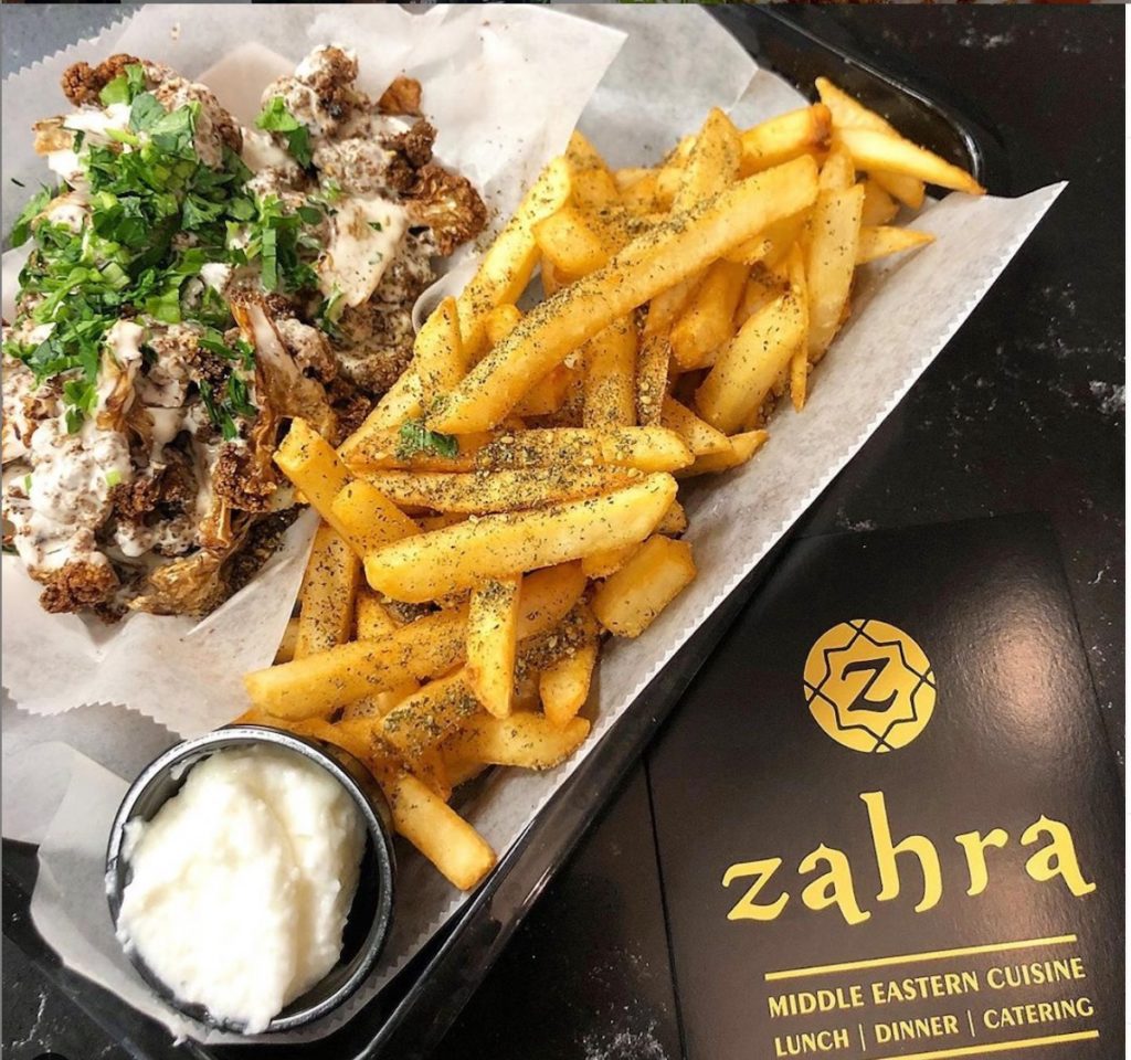 Daughter Samantha Younes came up with the concept for Zahra after wanting to share her family’s made-from-scratch cuisine with those who didn’t have time for a long sit-down meal. Zahra means cauliflower in Arabic and pays homage to a popular dish, Arnabit, made at Aladdin.