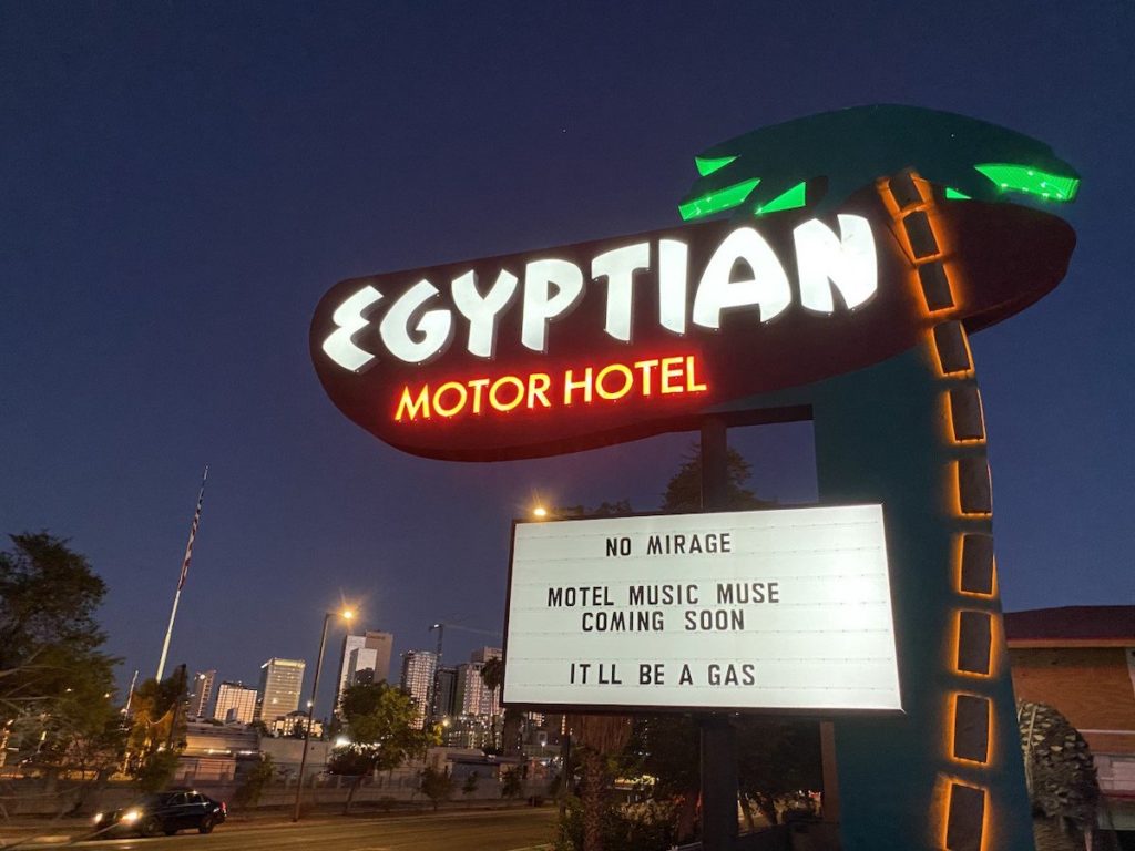 Egyptian Motor Hotel will feature a 250 seat outdoor entertainment venue, restaurant, bar, and retro-modern rooms when it opens later this year.