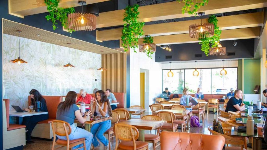 Coffee Plantation’s owners have ensured that the renovation touches every aspect of the old design. Customers in Scottsdale can soak in the beauty of oak beams and sage green backsplash decorated with hanging plants.
