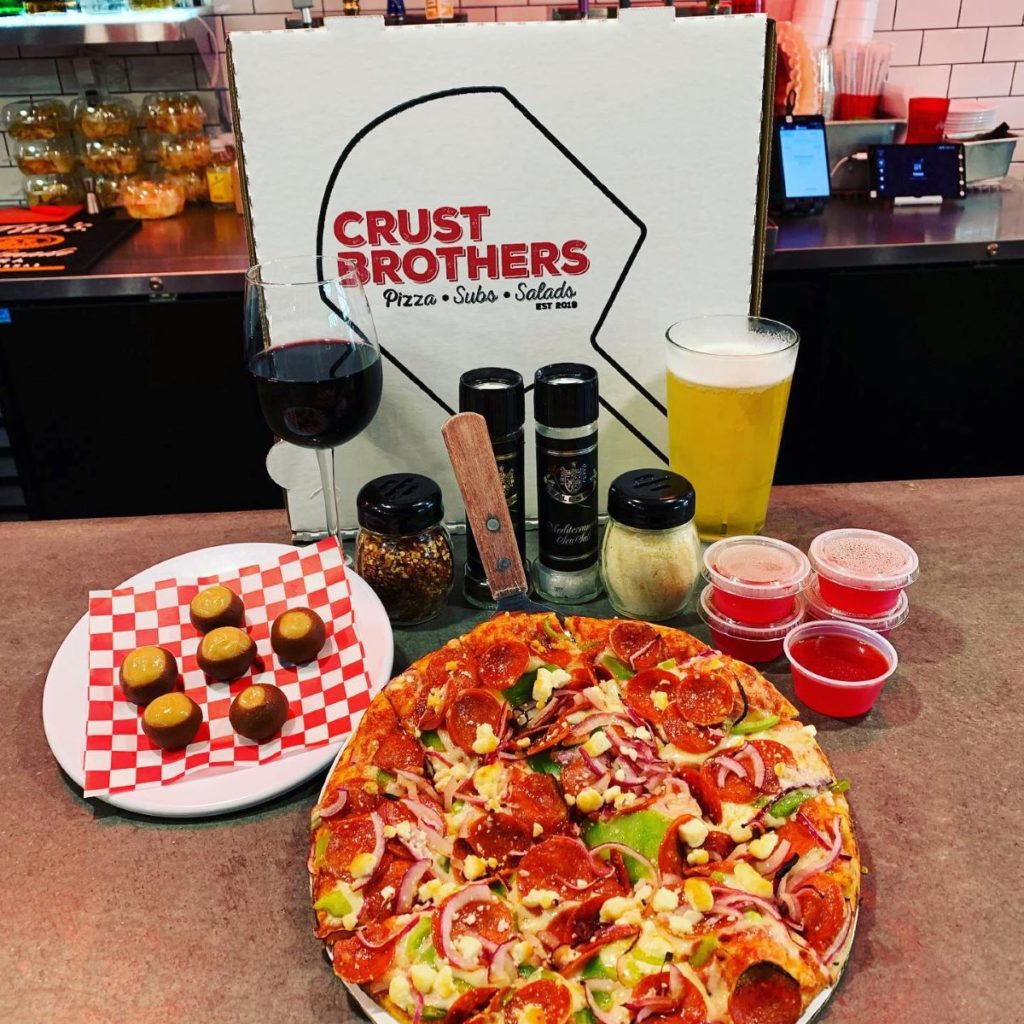 Their crushed tomato sauce is from a producer in Toledo, Ohio and is further prepared in-house with Crust Brothers’ own blend of spices, versus commercial sauces that usually come pre-seasoned. While the most popular pizza topping is classic pepperoni, Crust Brothers offers over 25 options when it comes to making a pie that is truly to your liking.Â