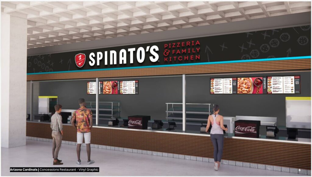 Spinato’s Pizzeria & Family Kitchen is the “Official Pizza of the Arizona Cardinals” after inking a deal with the NFL team to serve its fresh, delicious pizza at State Farm Stadium in Glendale at 1 Cardinals Dr.