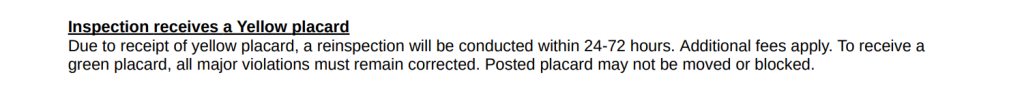 A reinspection is expected within 24-72 hours. If no violations are found, the restaurants will be awarded a green placard.