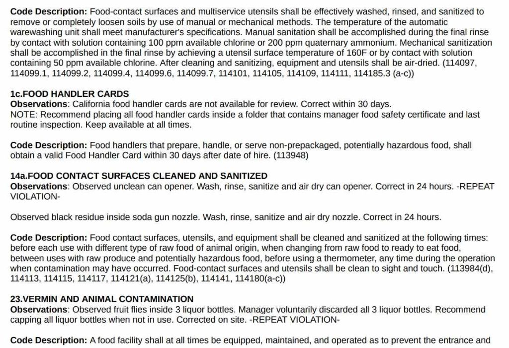 - The report noted build-up and residue on items like the can opener and soda gun nozzle.