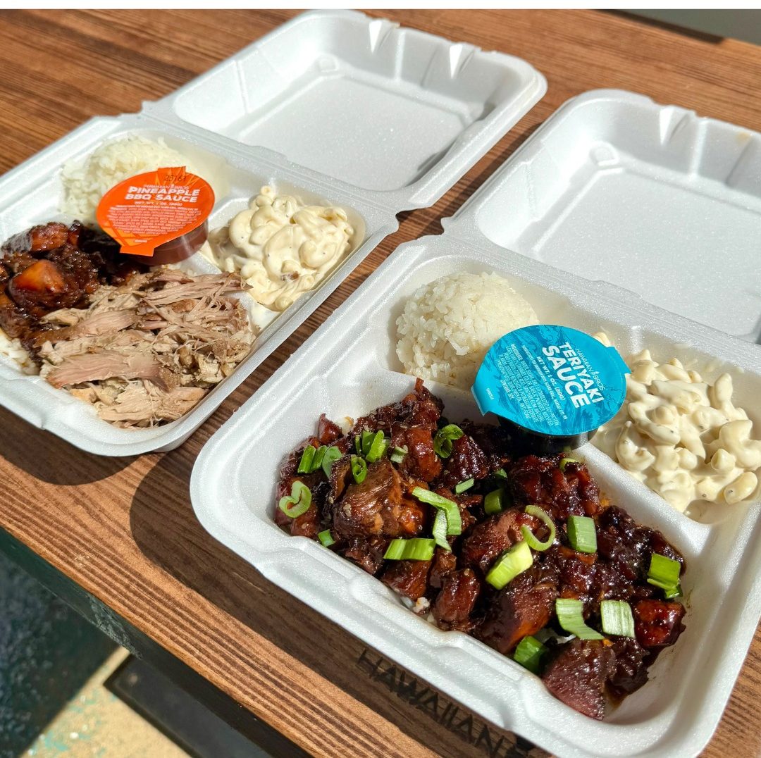 Hawaiian Bros plates with sides and sauce. (Image Credit: Hawaiian Bros Facebook)