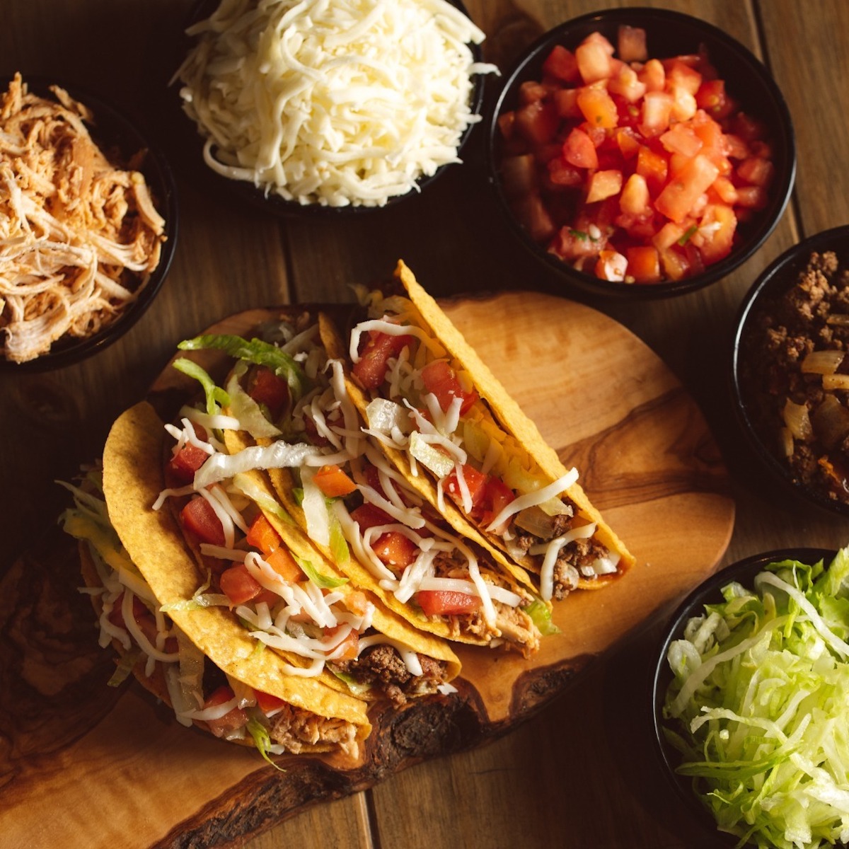 Grand Hacienda’s dinner menu centers entrees like Carnitas, served with rice, beans, onions, and pickled jalapeños and Huarache (A thick oval home-made corn tortilla deep fried, filled with beans, steak, and tomatillo sauce, topped with lettuce, chopped onions, tomato, queso fresco, and sour cream). The menu also features quesadillas, tacos, enchiladas, burritos, chimichangas, and other favorites.