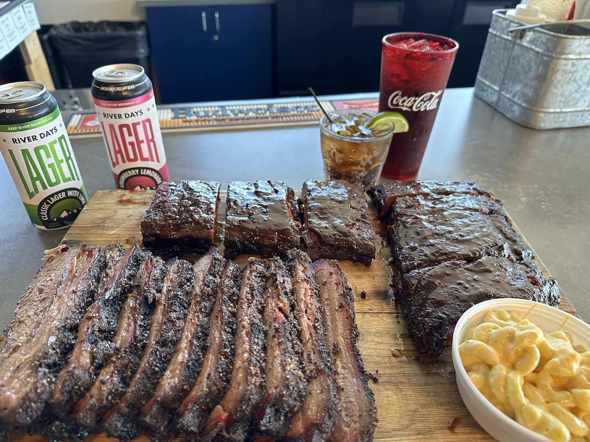 Bailey says guests can expect to find the same barbecue choices currently available at the Smithfield location, including Low and Slow Favorites like the Texas Trinity (8 oz of Texas brisket, half rack of ribs, and 8 oz of smoked sausage), the BBQ Chicken Plate, and the Pulled Pork Plate—all served in a space that seats about 200 guests, with outdoor patio space and indoor and outdoor bars. The overall menu will see some changes, however.