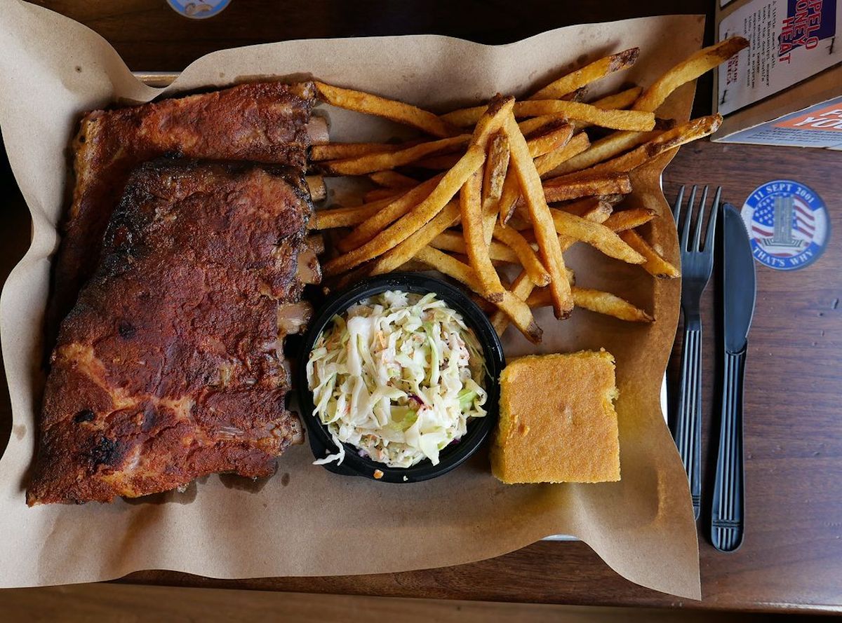 Mission’s menus are built around its “Meat Market” selection, which features Brisket, Pulled Pork, Turkey, Pulled Chicken, and Sausage. These are also available as sandwiches and can be made into Combos that pair them with sides like Maggie’s Mac-N-Cheese, Baked Beans, Cold Slaw, and Fresh Cut Fries.
