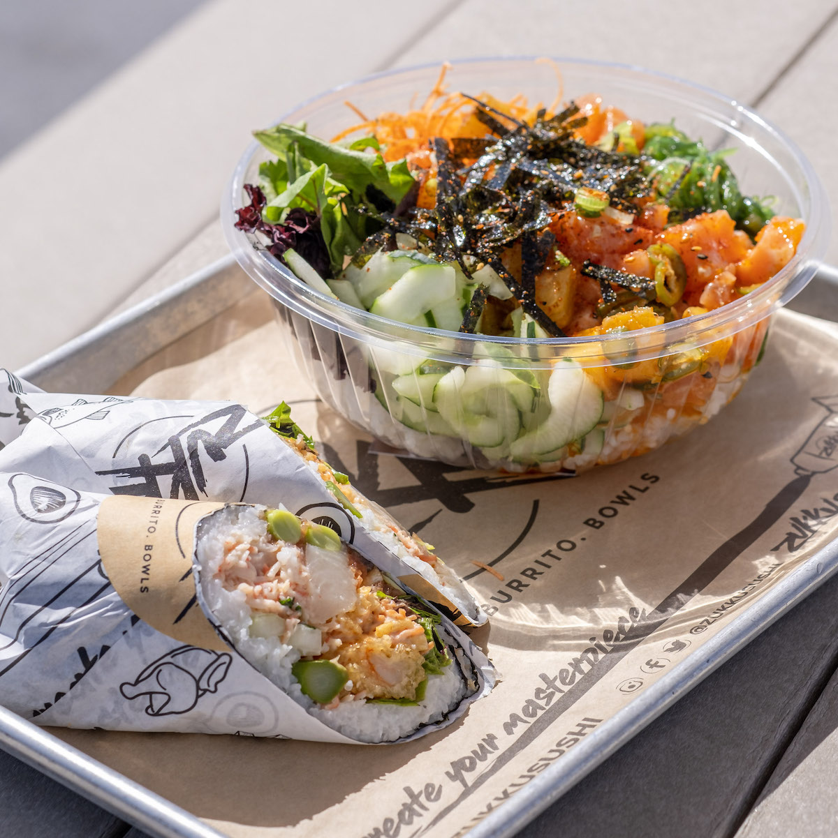 Ato currently has locations at Lakeland’s The Joinery and Wesley Chapel’s Krate. The Joinery location’s menu features Curated Sushi Burritos and Curated Big Poke Bowls, including The Godzilla sushi burrito (Spicy Tuna, Hamachi [yellowtail], Tempura Shrimp, Crab Mix, Edamame Beans, Wonton Chips, Mixed Greens, Carrots, Asparagus, Cucumbers, Spicy Mayo Sauce) and the Florida Bowl (Fresh Tuna, Salmon, Avocado, Carrots, Mixed Greens, Asparagus, Cucumbers, Wakame, Tempura Chips, Sweet & Spicy Sauce).