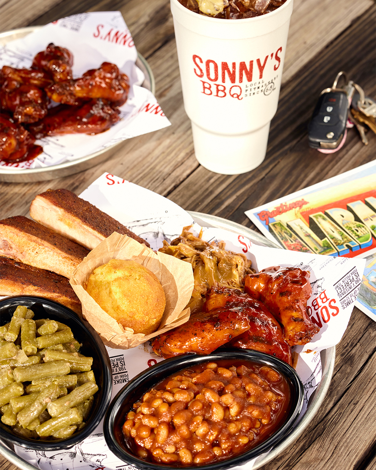 That means more of Sonny’s Pitmaster Plates like the Sonny’s Sampler (Pulled Pork, Sliced Brisket, 1/4 BBQ Chicken and Sweet & Smokey St. Louis Ribs) and the Pork 3 Ways (A tasty trifecta of the meat that made us famous – Pulled Pork, Sliced Pork and Sweet & Smokey Ribs). And don’t forget appetizers like BBQ Pork Egg Rolls, Loaded Tots, Corn Nuggets, and Fried Okra.